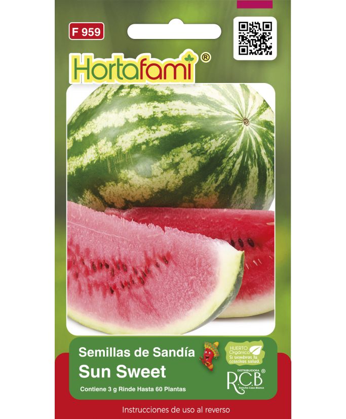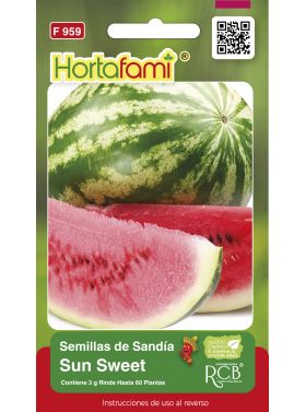 Sobre de semilla de Sandía Sun Sweet de 3 gramos y rinde hasta 60 plantas.