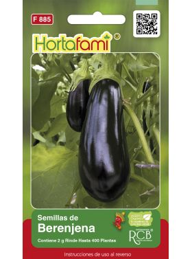 Sobre de semilla de Berenjena Hortafami de 2.0 gramos y rinde hasta 400 plantas.