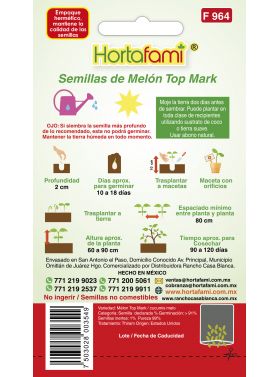 Sobre de semilla de Melon Topmark de 6.0 gramos y rinde hasta 240 plantas.