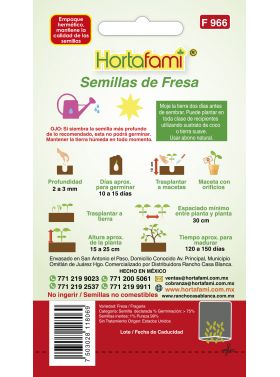 Profundidad de siembra: 5 cm. Distancia entre planta y planta 3 m.