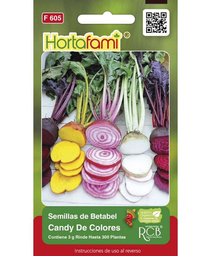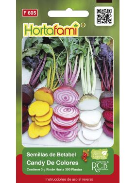 Sobre de semilla de Betabel Candy de Colores Hortafami de 5.0 gramos y rinde hasta 500 plantas.