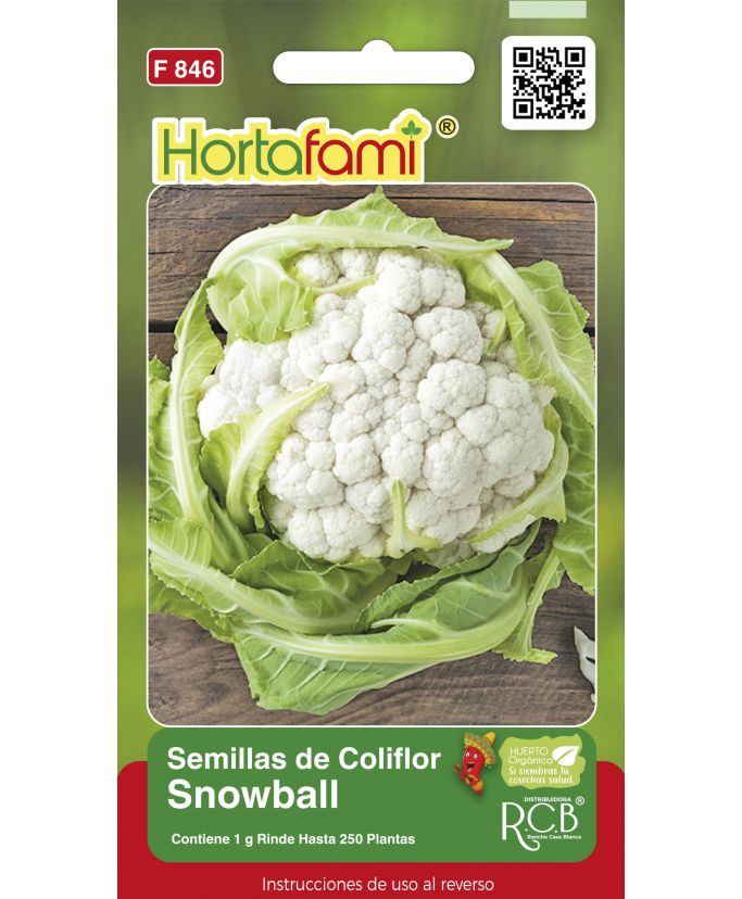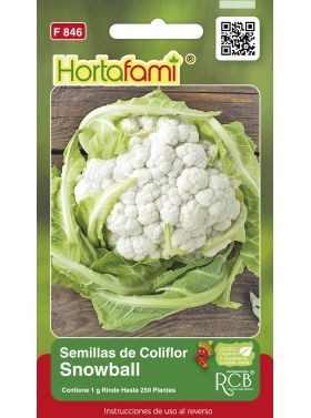 Sobre de semilla de Coliflor Snowboll Hortafami de 0.6 gramo y rinde hasta 250 plantas.