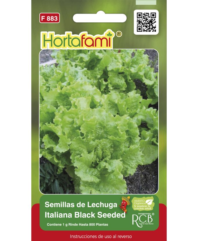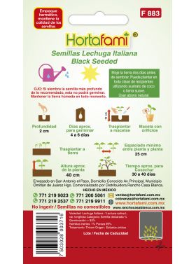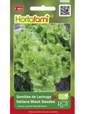 Sobre de semilla de Lechuga Italiana Black Seeded Hortafami de 1.0 gramo y rinde hasta 800 plantas.