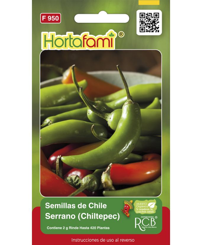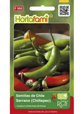 Sobre de semilla de Chile Serrano (Chile Chiltepec) de 2.00 gramos y rinde hasta 420 plantas.